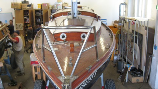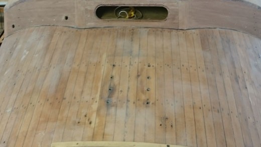 Die Lukendeckel werden furniert und diverse Schäden beseitigt.