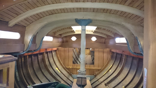 Das Deck wurde bereits entfernt, die gut konservierten Decksbalken sind in einem sehr guten Zustand.